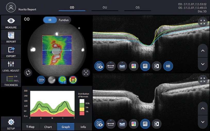 Fácil de usar y los resultados son destacados y fáciles de seguir. El HOCT Huvitz todo en uno será el ícono para liderar una nueva era de Tomografía de Coherencia Óptica (OCT)