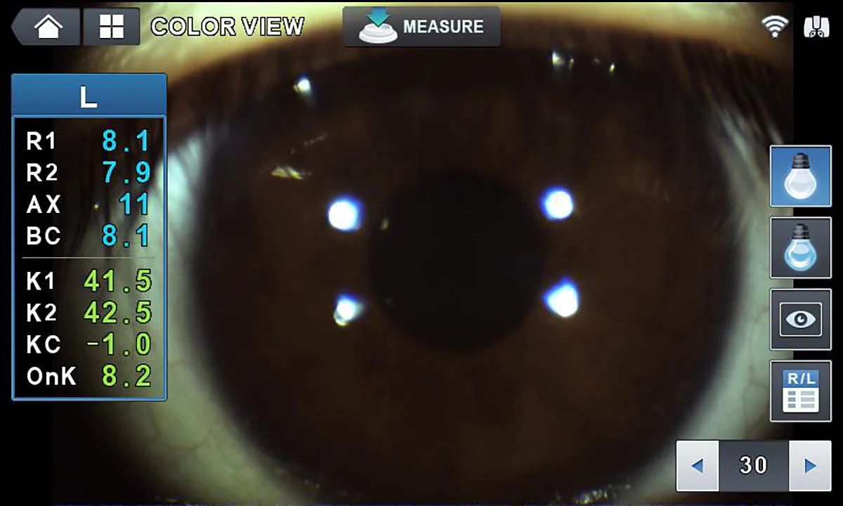 El algoritmo de análisis de frente de onda de Huvitz va más allá de la refracción general para concluir la potencia refractiva y el índice corneal altamente precisos y fiables.
